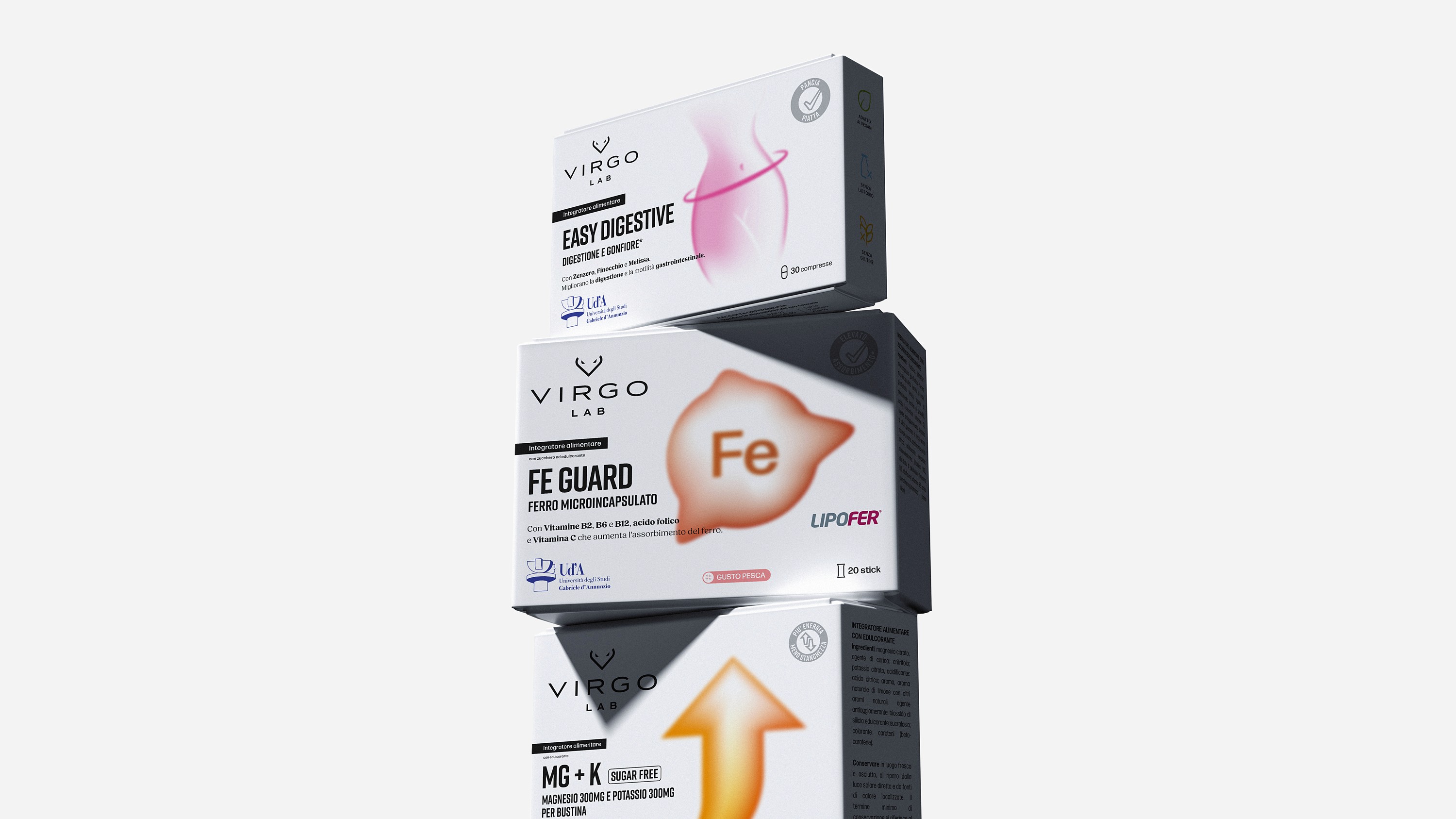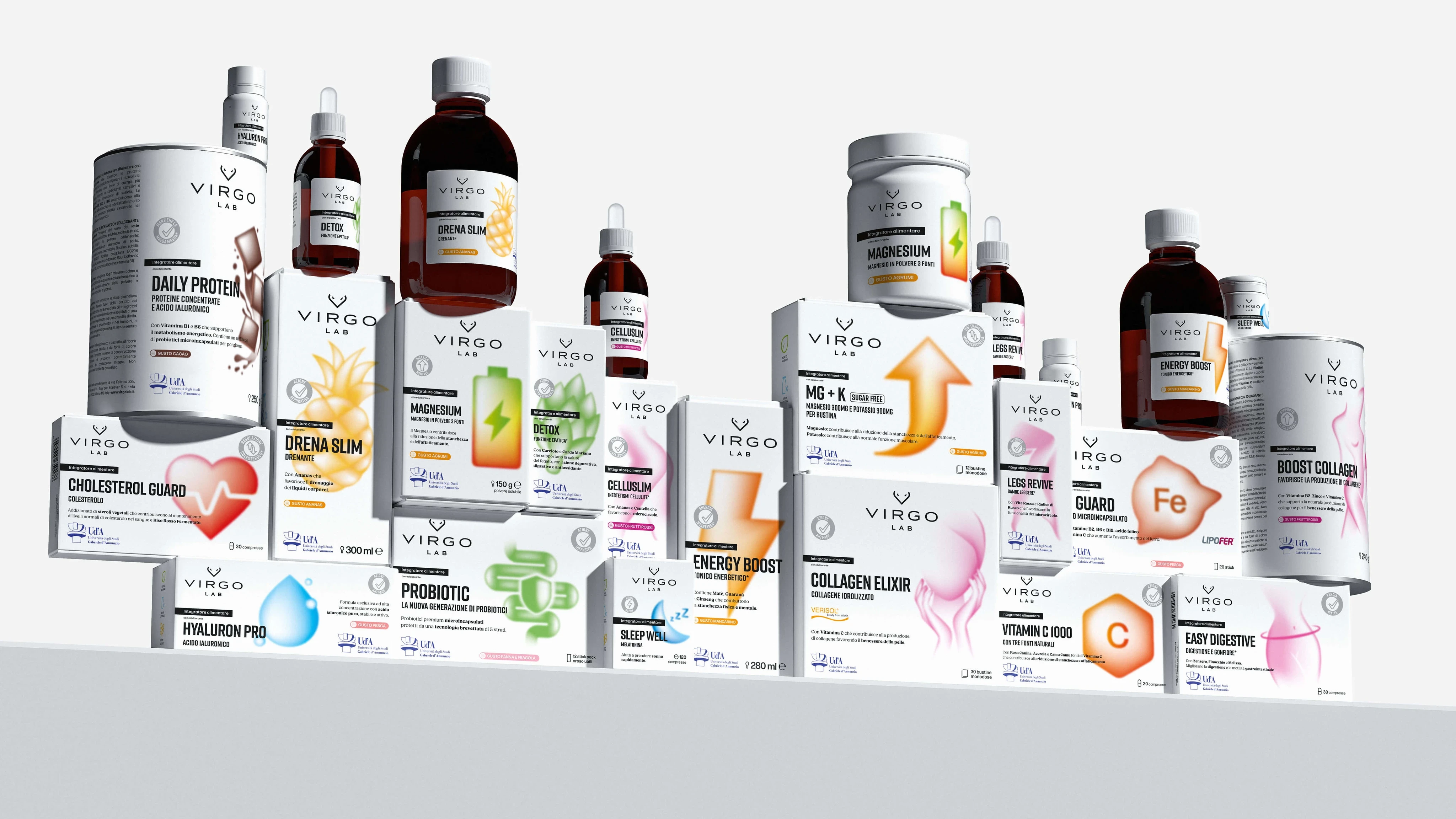Visual Identity & Packaging Design for Virgo Lab food supplements.